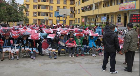 南丹縣里湖鎮(zhèn)是廣西白褲瑤聚居鄉(xiāng)鎮(zhèn),被譽(yù)為“中國(guó)白褲瑤之鄉(xiāng)”。那里的學(xué)生學(xué)習(xí)和生活條件都十分艱苦,很多孩子在嚴(yán)寒的冬天依然缺衣少襪,有的還穿著涼鞋單衣。千帆公司給南丹縣里湖鎮(zhèn)的瑤族鄉(xiāng)民族中學(xué)、中心小學(xué)和干河小學(xué)的孩子們帶來了大批的冬衣、學(xué)習(xí)設(shè)備等愛心物資。希望在寒冷的冬日,能讓山村的孩子們感受到濃濃的暖意。